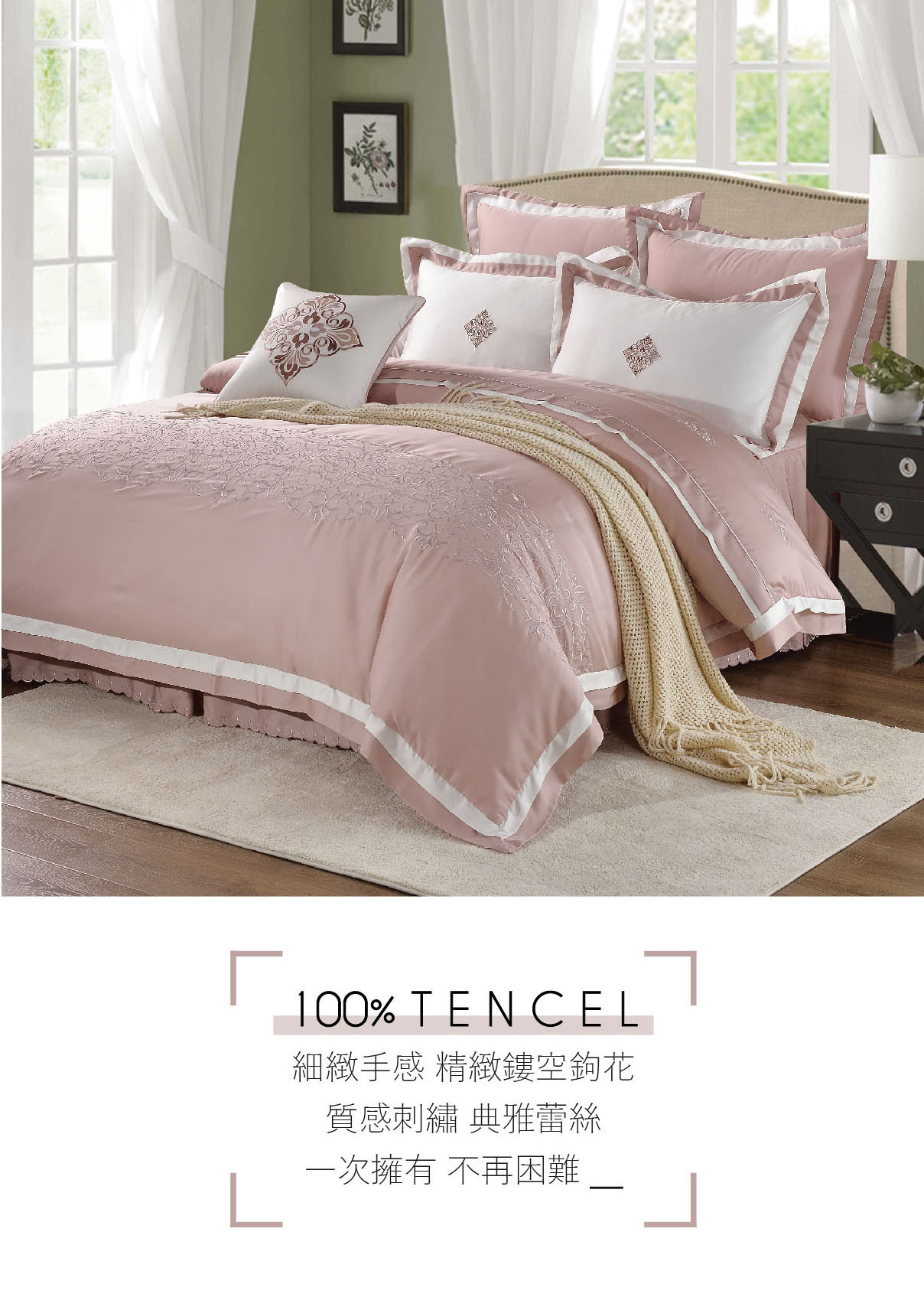 80支天絲防蟎抗菌素色系列-柔霧玫瑰眠